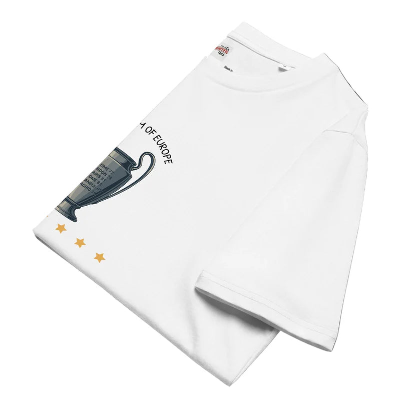 Celebrate Liverpool's legendary European dominance with the Cream of Europe T-shirt. A tribute to every unforgettable night under the lights. Featuring a bold design that showcases the club's Champions League triumphs, this t-shirt is made for true Reds who know what it means to be kings of the continent. Whether you were there in Istanbul, Madrid or watching from the Kop, this t-shirt lets you carry the spirit of Europe's finest wherever you go.